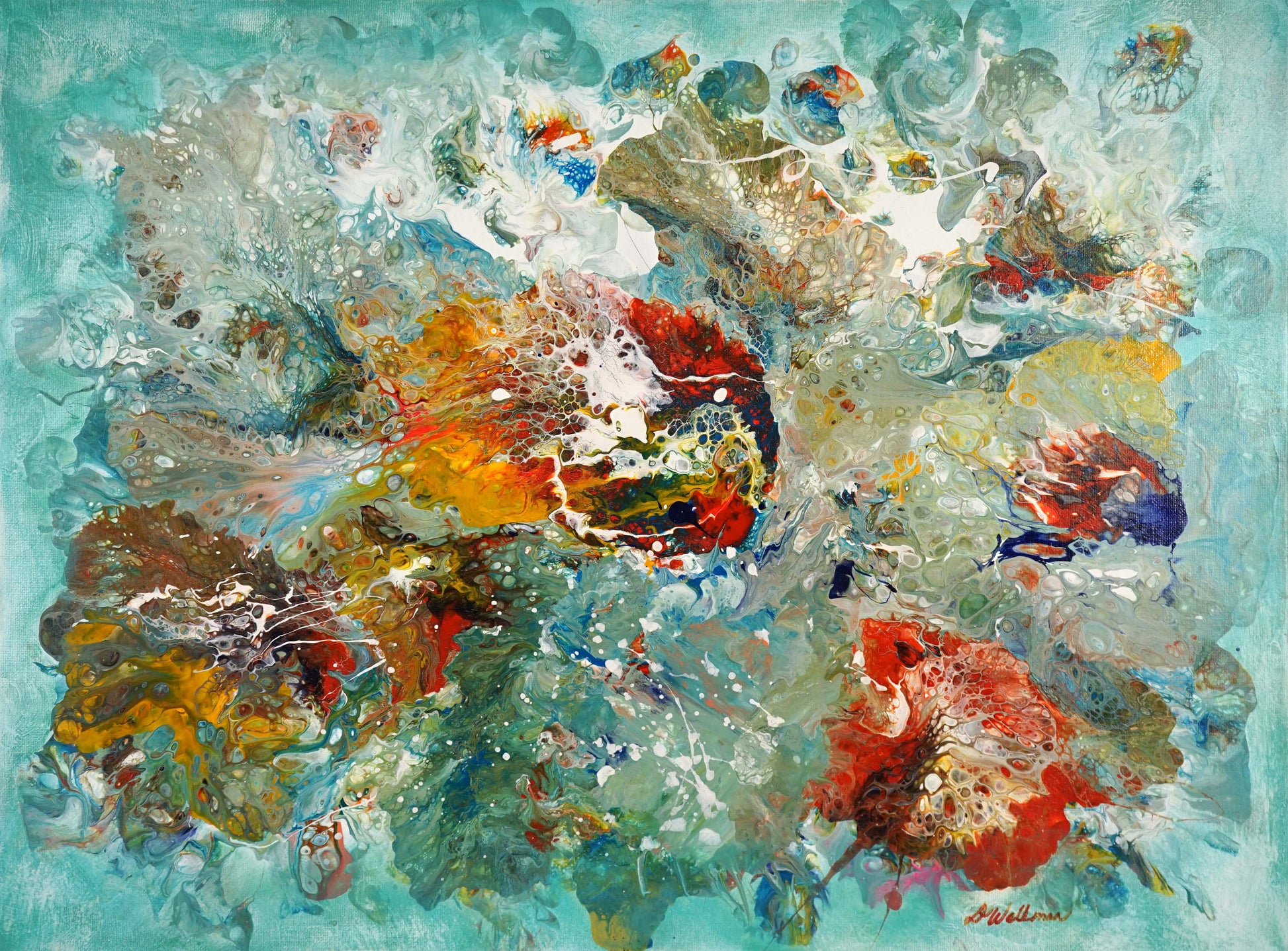 This abstract artwork captures the lively spirit of wild, whimsical blooms, adding warmth and inspiration to your space. Its vibrant colors and playful design invite joy and imagination. "Wild Flowers," an original 24" x 18" x .75 acrylic on canvas piece.